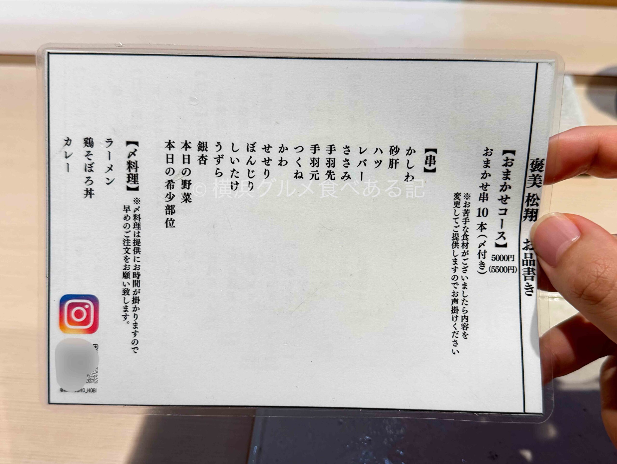 関内店と同じく基本は「串10本+〆」のおまかせコース1本のみ。サイドメニューは一切なくひたすら串が出てくるスタイル。