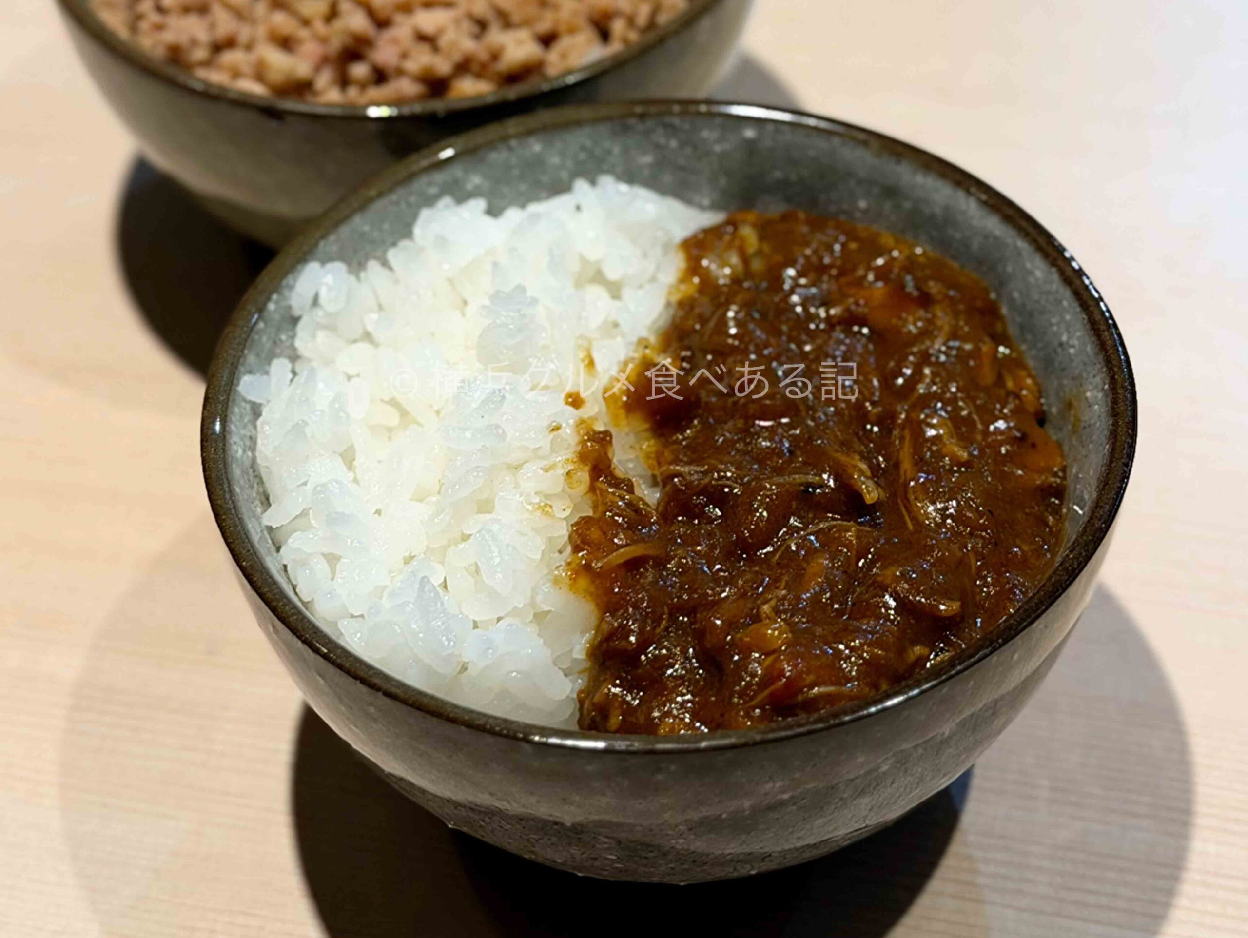 〆には、「カレー」「ラーメン」「鶏そぼろ」の3種の中からランダムで一品。