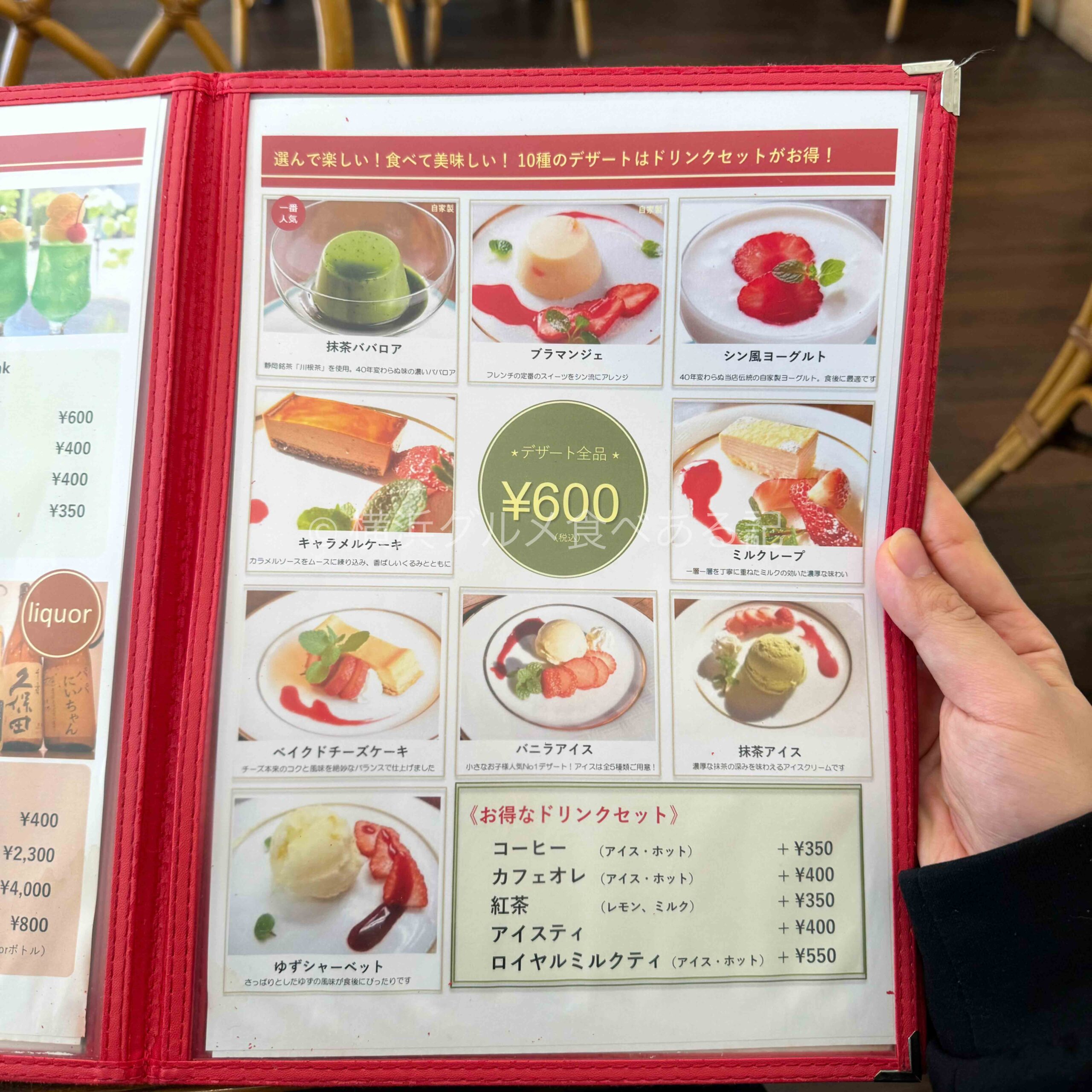 デザートは全品600円で全部で9種類ありました。