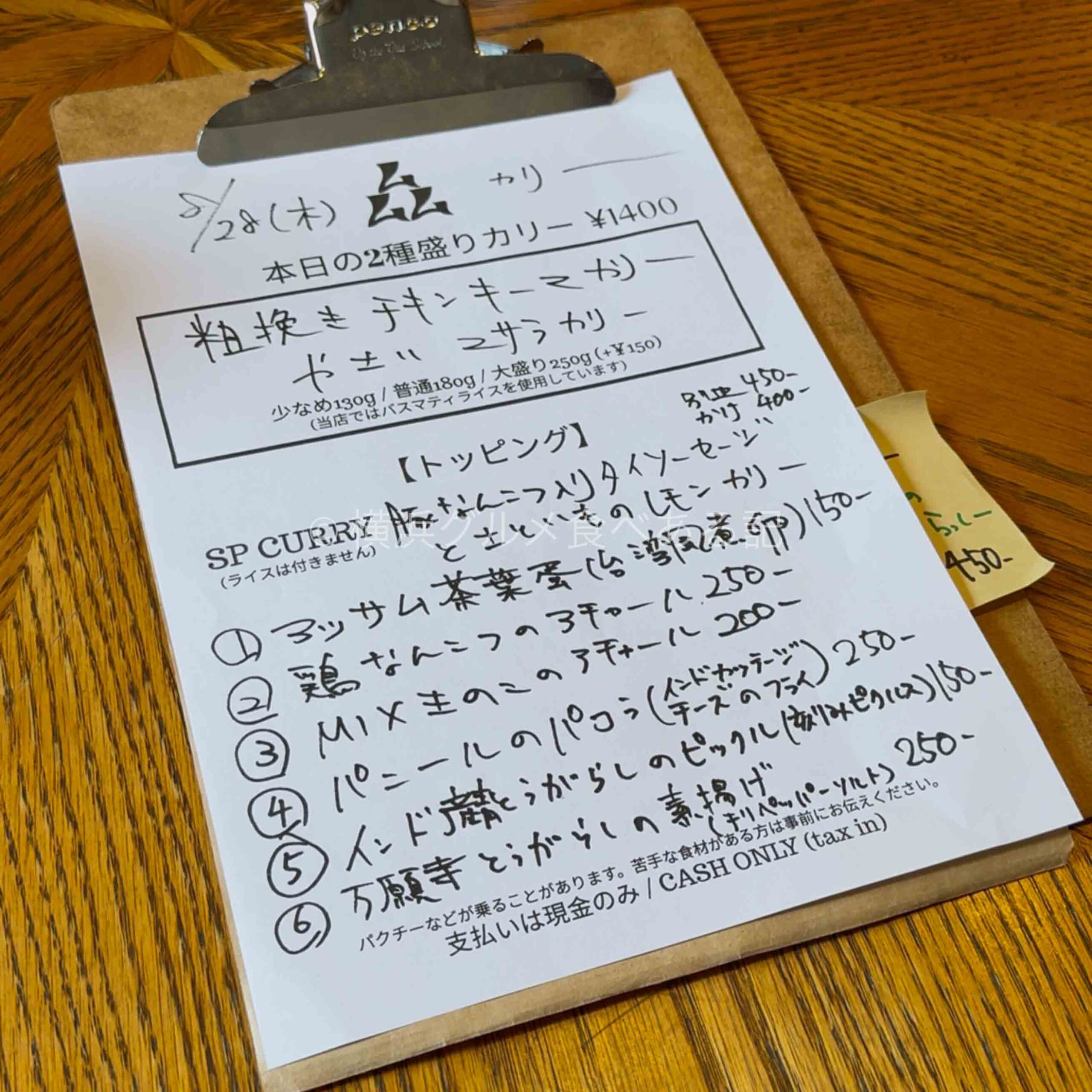 トッピングが6種類ほど、追加のスペシャルカレーも用意されていました。