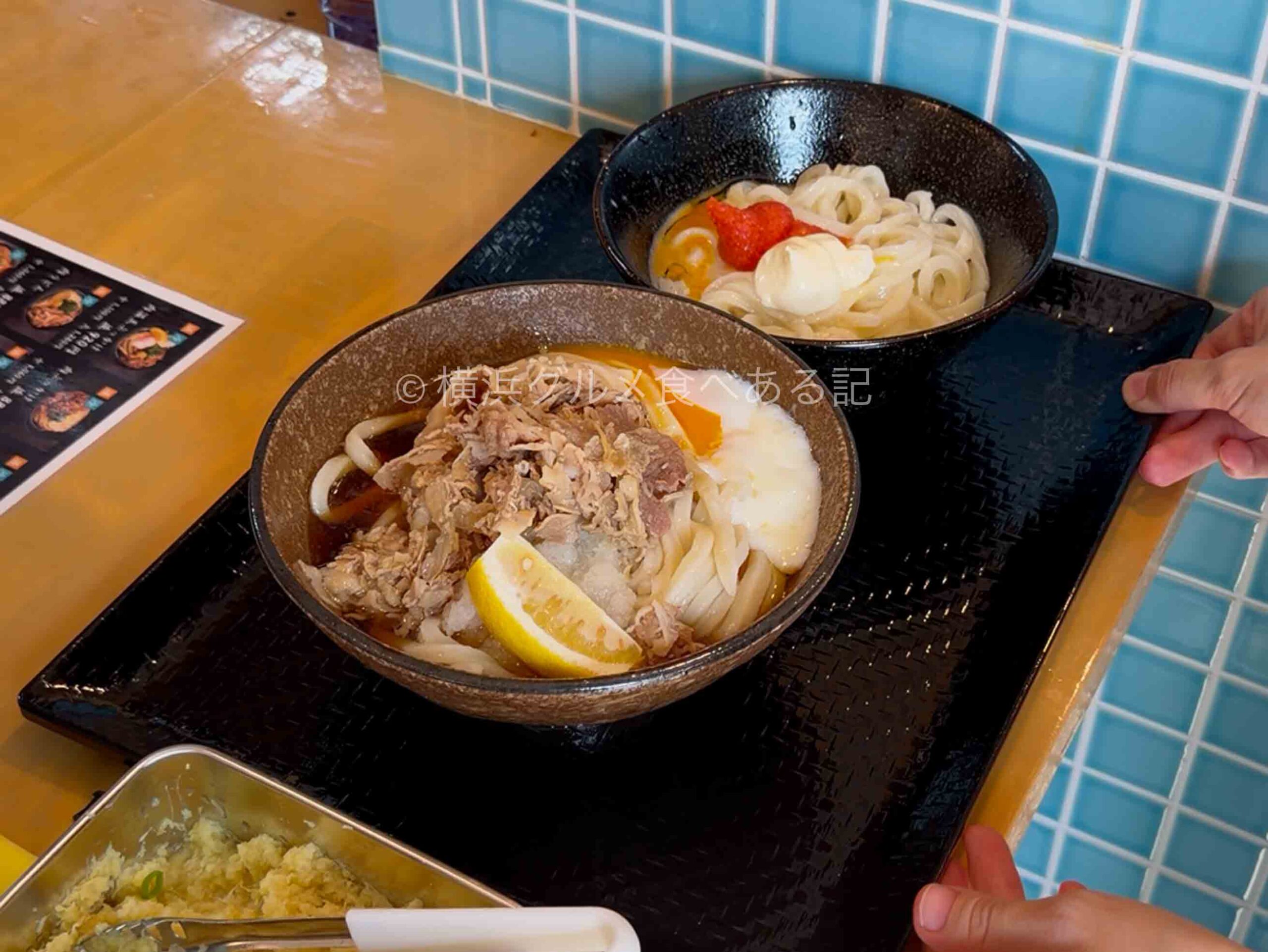 今回は「肉温玉ぶっかけ(中) 」と「明太マヨ釜玉(並) 」