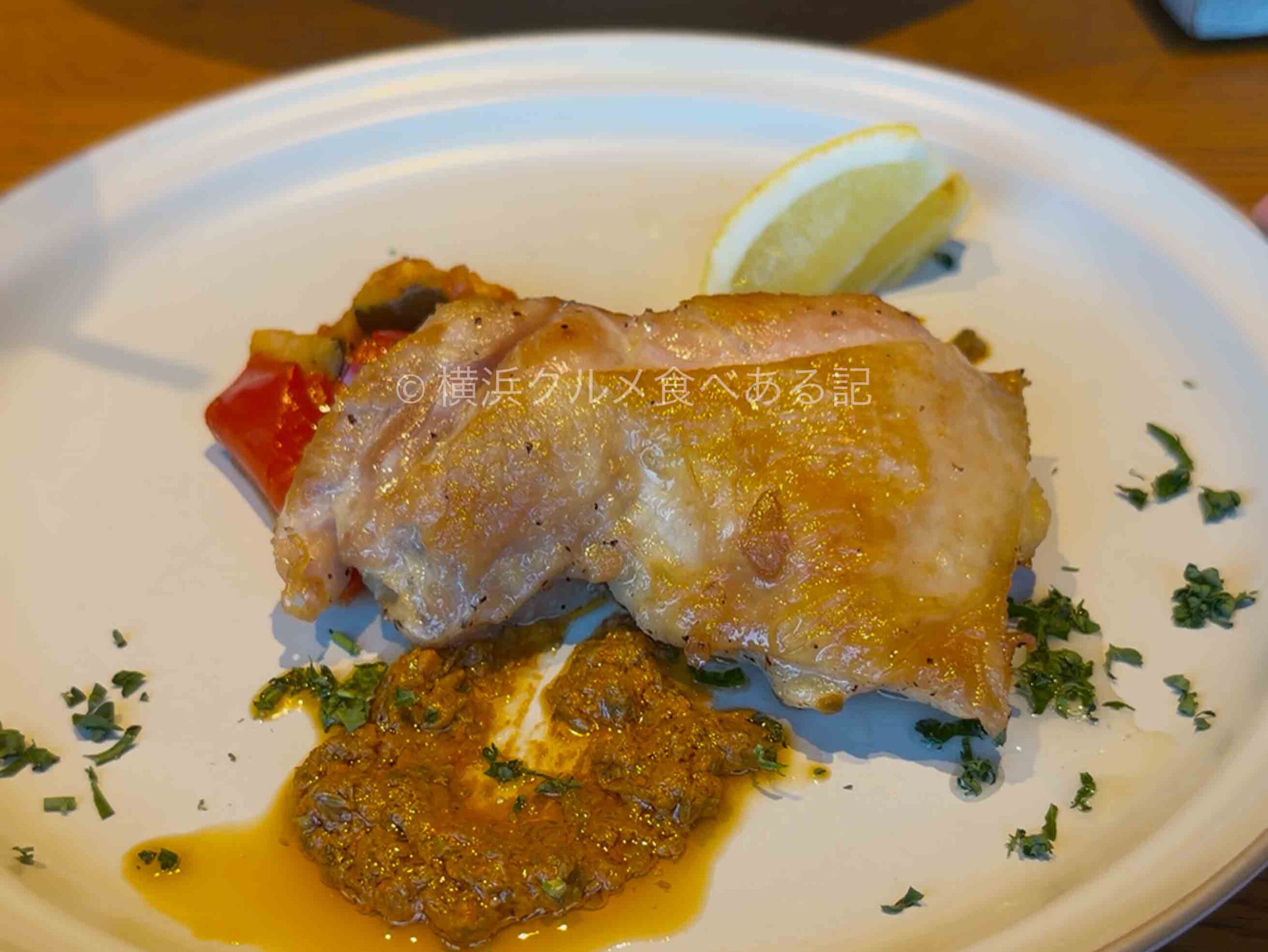 メインはローストチキンを選択。他のメインは追加料金なのでこちらを選ぶ人が多かったですね。